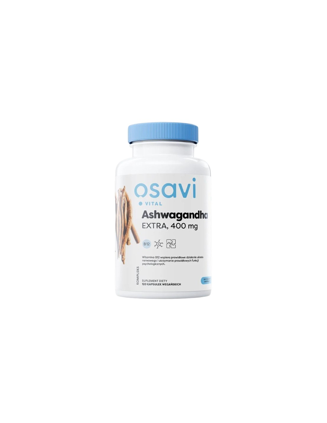 OsaviOPIS: Suplement diety w postaci kapsułki twardej zawierającej standaryzowany ekstrakt z korzenia ashwagandha (Withania somnifera) i witaminę B12 (metylokobalamina).