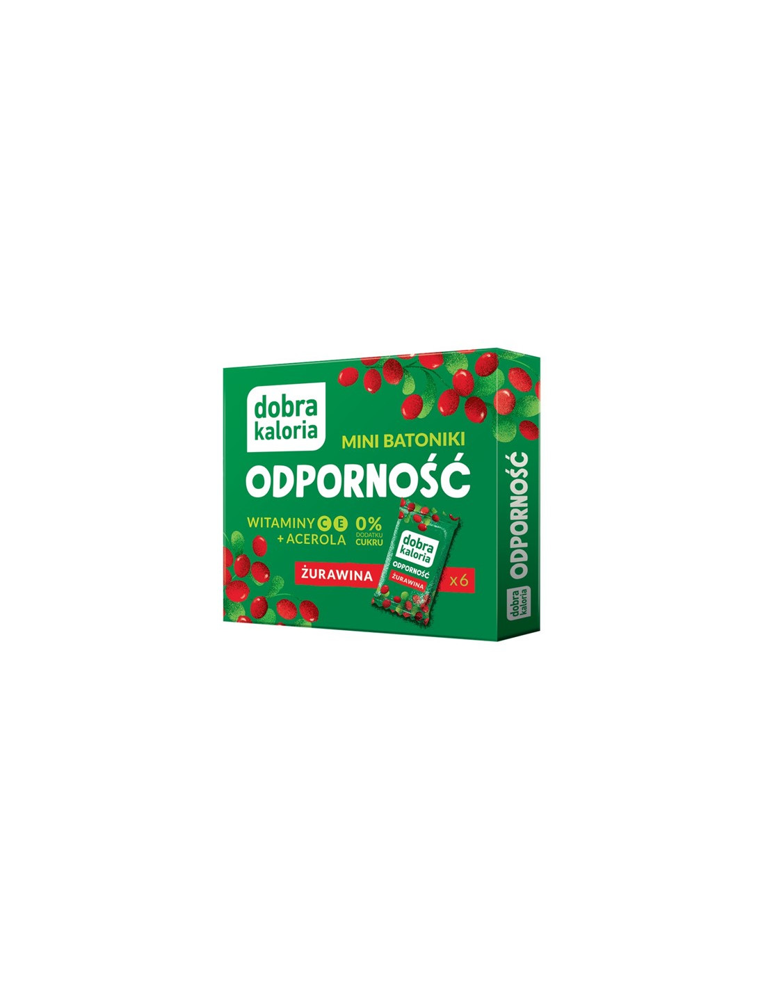 DOBRA KALORIA (batony, produkty śniad. i wege)Minibatoniki ODPORNOŚĆ Dobra Kaloria, 102g Co zrobić, by nie czuć osłabienia nawet podczas chłodnych i ponurych dni? Spróbować naszych nowych batoników – Odporność, o smaku żurawiny — pyszne, z prostym składem i zawierające masę wartościowych składników odżywczych.