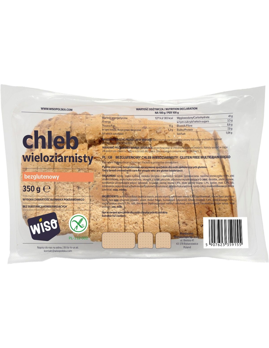 CHLEB WIELOZIARNISTY KROJONY BEZGLUTENOWY 350 g - WISO