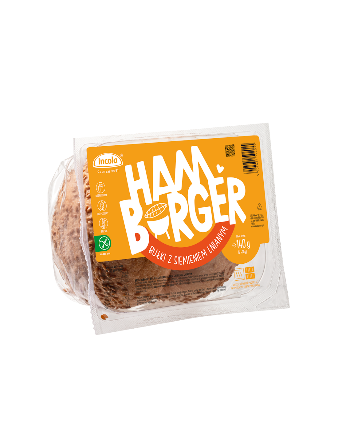 BUŁKI DO HAMBURGERÓW Z SIEMIENIEM LNIANYM BEZGLUTENOWE (2 szt.) 140 g - INCOLA