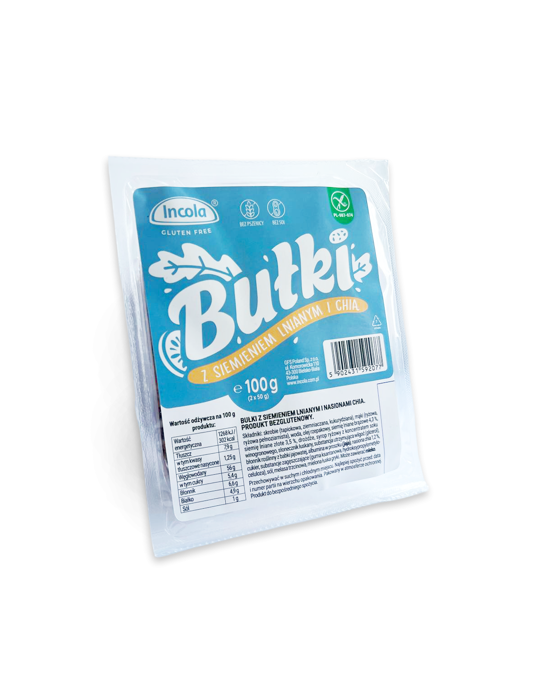 BUŁKI Z SIEMIENIEM LNIANYM I CHIA BEZGLUTENOWE (2 x 50 g) 100 g - INCOLA