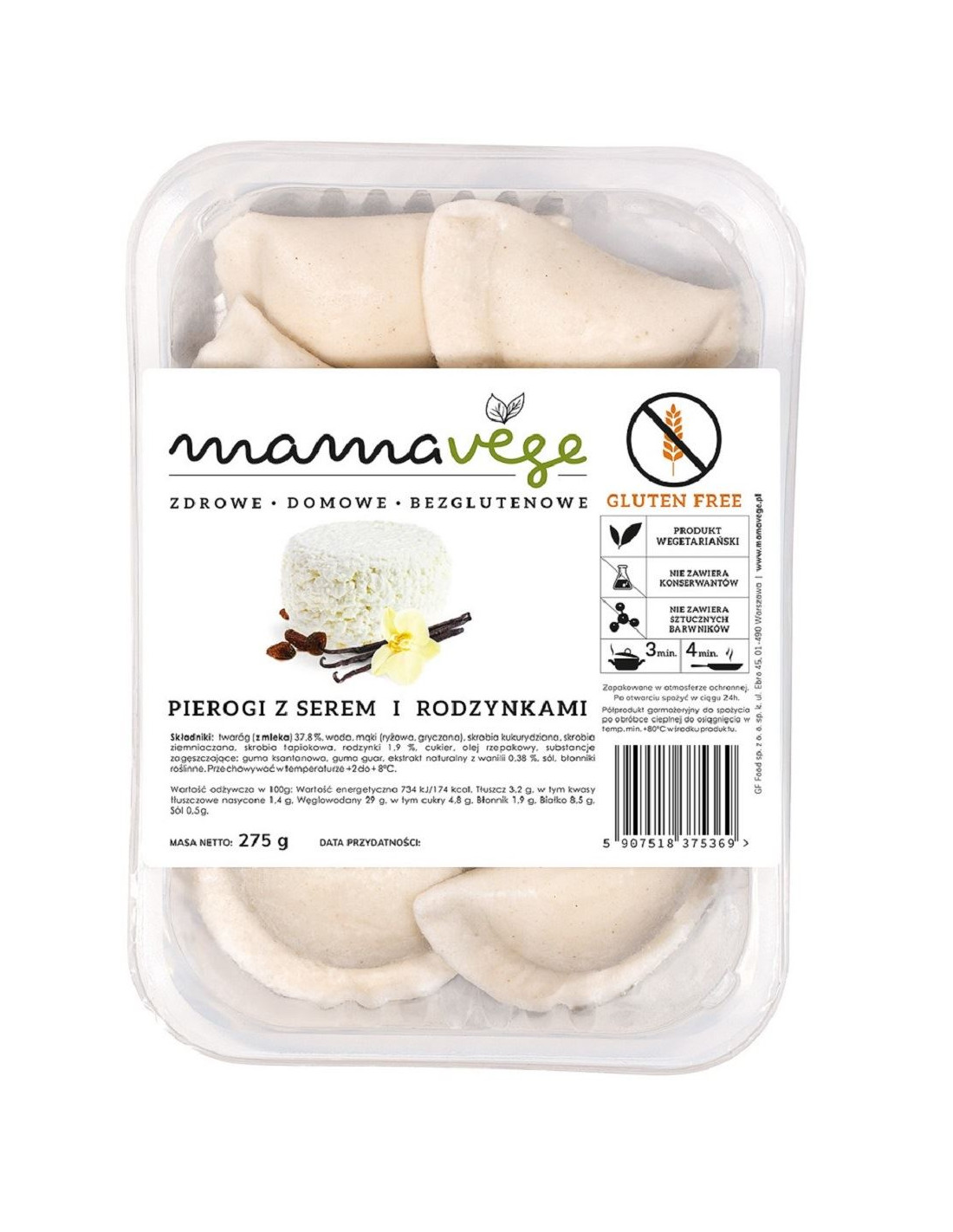 PIEROGI Z SEREM I RODZYNKAMI BEZGLUTENOWE 275 g - MAMA VEGE