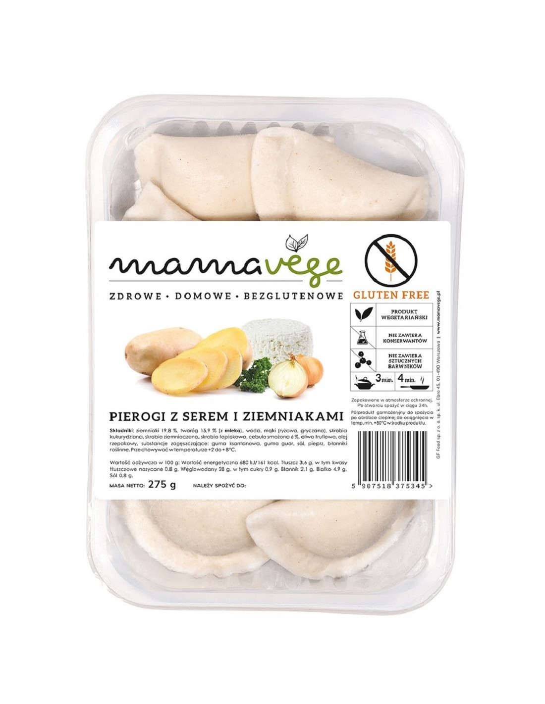 PIEROGI Z SEREM I ZIEMNIAKAMI BEZGLUTENOWE 275 g - MAMA VEGE