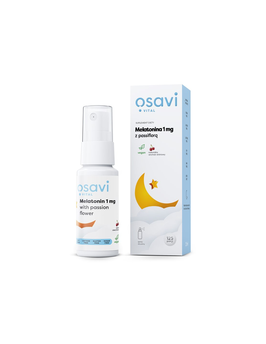 Melatonina z passiflorą spray doustny, 1mg (wiśnia) - 25ml - Osavi