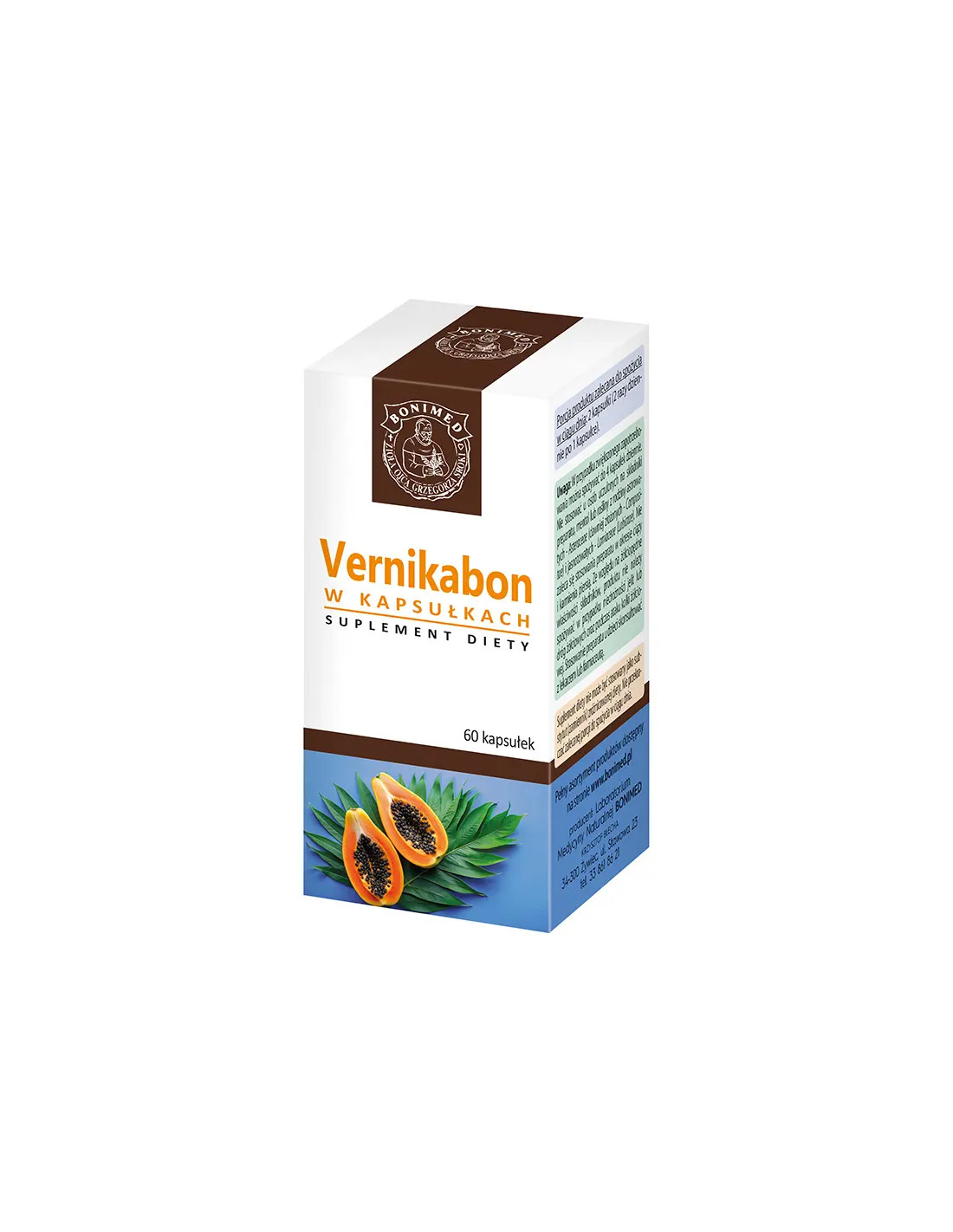 BONIMEDZalecana do spożycia dzienna porcja produktu (2 kapsułki) zawiera: Ekstrakt z owoców orzecha włoskiego 400 mg. Ekstrakt z nasion czarnuszki 250 mg. Ekstrakt z liści papai 150 mg. Ekstrakt z ziela bylicy pospolitej 120 mg. Ekstrakt z kłącza imbiru 28 mg. Kwiat goździkowca (goździk) 5 mg. Owoc kminku 5 mg. Ziele tymianku 5 mg. Owoc kolendry 5 mg. Liść mięty pieprzowej 5 mg. Ekstrakt z owoców pieprzu czarnego 2 mg. Składniki: ekstrakt z owoców orzecha włoskiego (Juglans regia L.), ekstrakt z nasion czarnuszki (Nigella sativa L.), żelatyna, ekstrakt z liści papai (melonowiec właściwy, Carica papaya L.), ekstrakt z ziela bylicy pospolitej (Artemisia vulgaris L.), ekstrakt z kłącza imbiru (Zingiber officinale Roscoe), kwiat goździkowca (goździk, Syzygium aromati cum (L.) Merr. et L.M. Perry), owoc kminku (Carum carvi L.), ziele tymianku (Thymus vulgaris L.), owoc kolendry (Corian drum sativum L.), liść mięty pieprzowej (Mentha x piperita L.), ekstrakt z owoców pieprzu czarnego (Piper nigrum L.). Porcja produktu zalecana do spożycia w ciągu dnia: 2 kapsułki (2 razy dziennie po 1 kapsułce). Ważne: W przypadku zwiększonego zapotrzebowania można spożywać do 4 kapsułek dziennie.