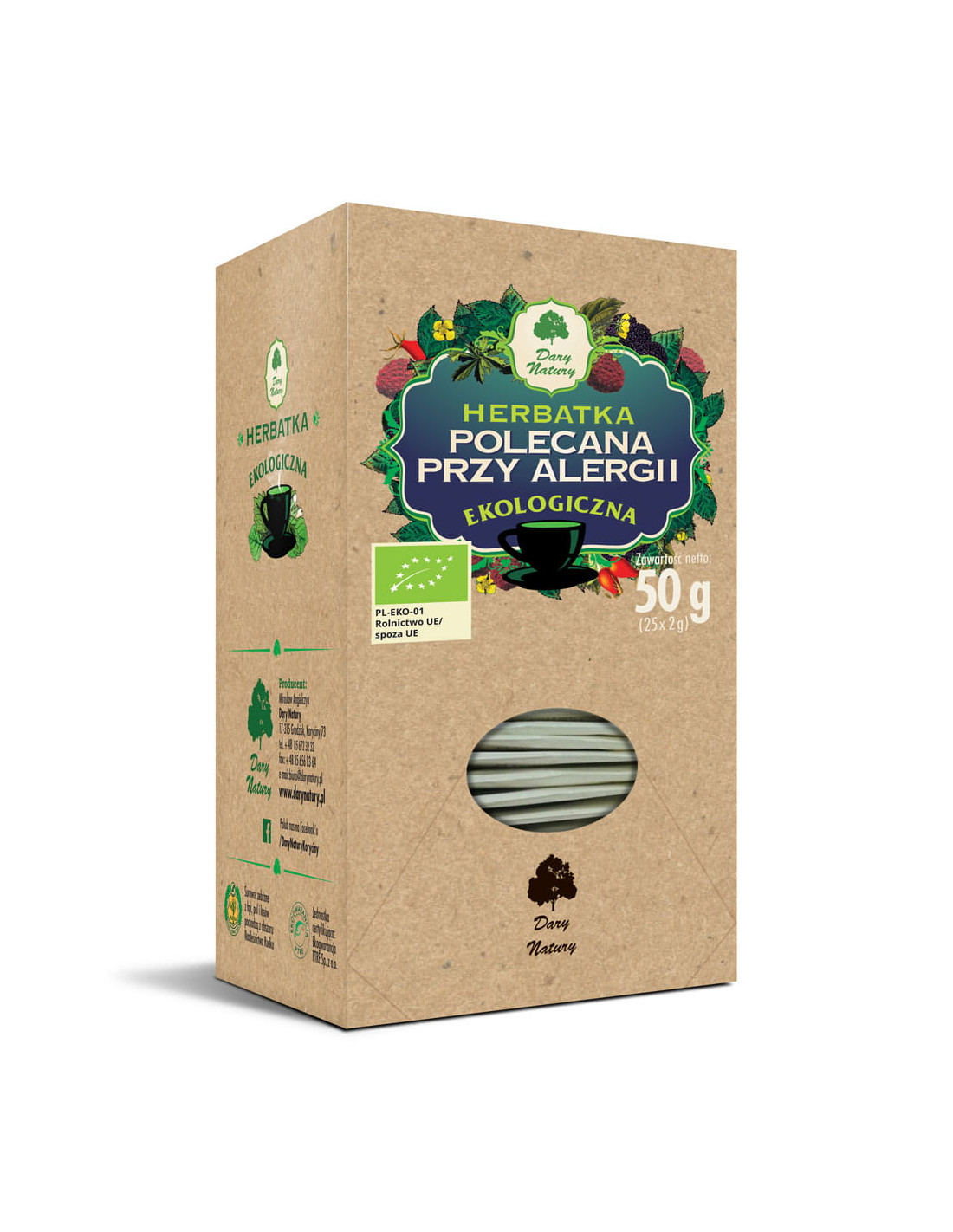 Naturalna herbatka ziołowa skomponowana z najwyższej jakości składników. Ziele świetlika wspiera zdrowie oczu, dzięgiel wspomaga układ oddechowy i przyczynia się do ochrony organizmu przed czynnikami zewnętrznymi, korzeń mniszka działa przeciwzapalnie, a nagietek przyspiesza regenerację organizmu i działa przeciwalergicznie. Składniki: ziele ostrożenia* 15%, ziele świetlika*, ziele przytuli*, liść jeżyny*, liść pokrzywy*, owoc maliny*, owoc róży*, liść dzięgla leśnego*, korzeń mniszka*, korzeń łopianu*, kłącze pięciornika kurzego*, płatki nagietka* w różnych proporcjach. *produkt rolnictwa ekologicznego