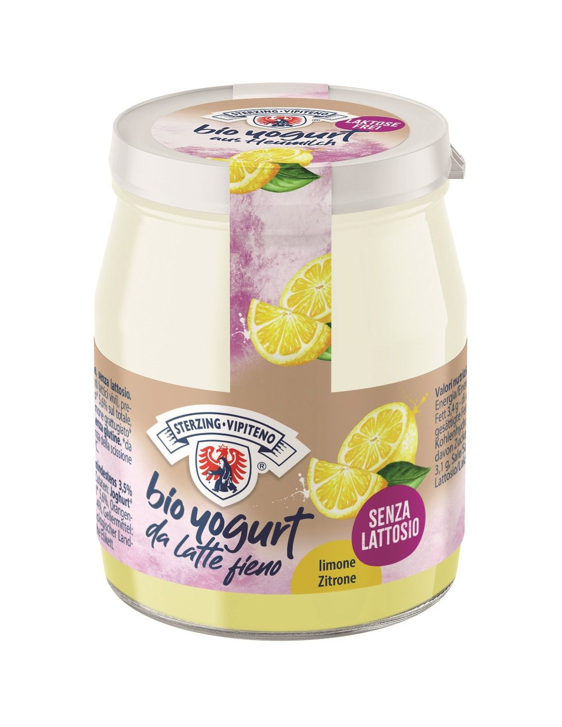 JOGURT CYTRYNOWY Z MLEKA SIENNEGO BEZ LAKTOZY BEZGLUTENOWY BIO 150 g (SŁOIK) - STERZING-VIPITENO
