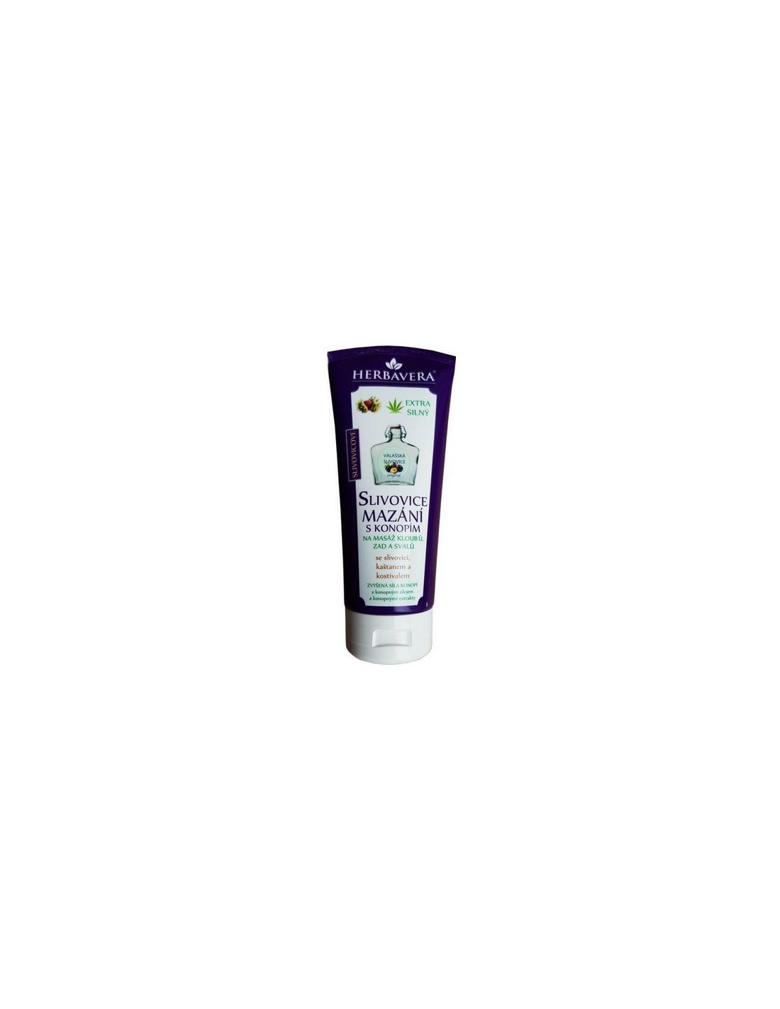 HerbaveraBalsam konopny z wołoską śliwowicą znakomicie nadaje się do masażu bolących pleców, ścięgien, mięśni i miejscowych obrzęków, schładza i pobudza ukrwienie. W produkcie użyto tłoczonego na zimno oleju konopnego. Konopia ma bardzo korzystny wpływ na skórę i jej regenerację.