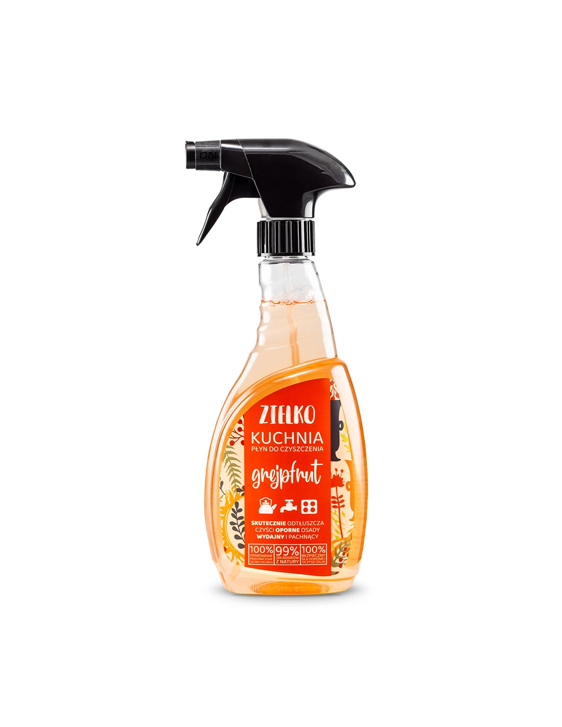 Uniwersalny, ekologiczny płyn do kuchni. Skutecznie czyści piekarniki, kuchenki mikrofalowe, płyty grzewcze i inne powierzchnie kuchenne. Wypełnia kuchnię przyjemnym, naturalnym zapachem grejpfruta. Ekologiczny płyn do kuchni ZIELKO o orzeźwiającym zapachu grejpfruta. Specjalnie opracowana formuła skutecznie i szybko radzi sobie z tłuszczem, osadami oraz przypalonymi zabrudzeniami, bez konieczności szorowania, co czyni sprzątanie łatwiejszym i przyjemniejszym. Płyn zapewnia idealną czystość, nie pozostawiając smug czy zacieków na czyszczonych powierzchniach. Jego ekologiczna formuła jest bezpieczna dla powierzchni mających kontakt z żywnością, co czyni go doskonałym wyborem dla świadomych użytkowników, dbających o siebie i swoich bliskich. Produkt jest niezwykle wydajny – niewielka ilość wystarczy, aby skutecznie oczyścić nawet najtrudniejsze kuchenne zabrudzenia. Naturalny zapach grejpfruta, na długo wypełnia kuchnię uczuciem czystości i świeżości. Płyn do kuchni ZIELKO sprawi, że codzienne porządki w Twojej kuchni staną się dla Ciebie prawdziwą przyjemnością. Uwaga: Działa drażniąco na oczy. W razie konieczności zasięgnięcia porady lekarza należy pokazać pojemnik lub etykietę. Chronić przed dziećmi. Dokładnie umyć ręce i dotknięte części ciała po użyciu.