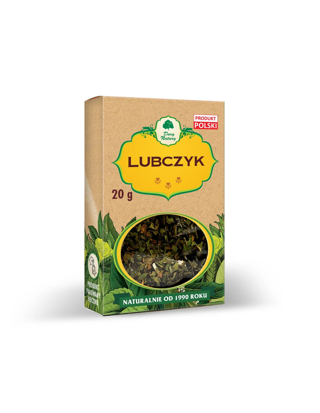 DARY NATURY - przyprawy i ziołaLubczyk jest przyprawą bardzo mocną, dlatego stosuje się go w małych ilościach. Przyprawia się nim potrawy z fasoli, zupy jarzynowe, kartoflankę, rosoły, poprawia zapach mięsa, potraw rybnych i sosów. Składniki: lubczyk 100%