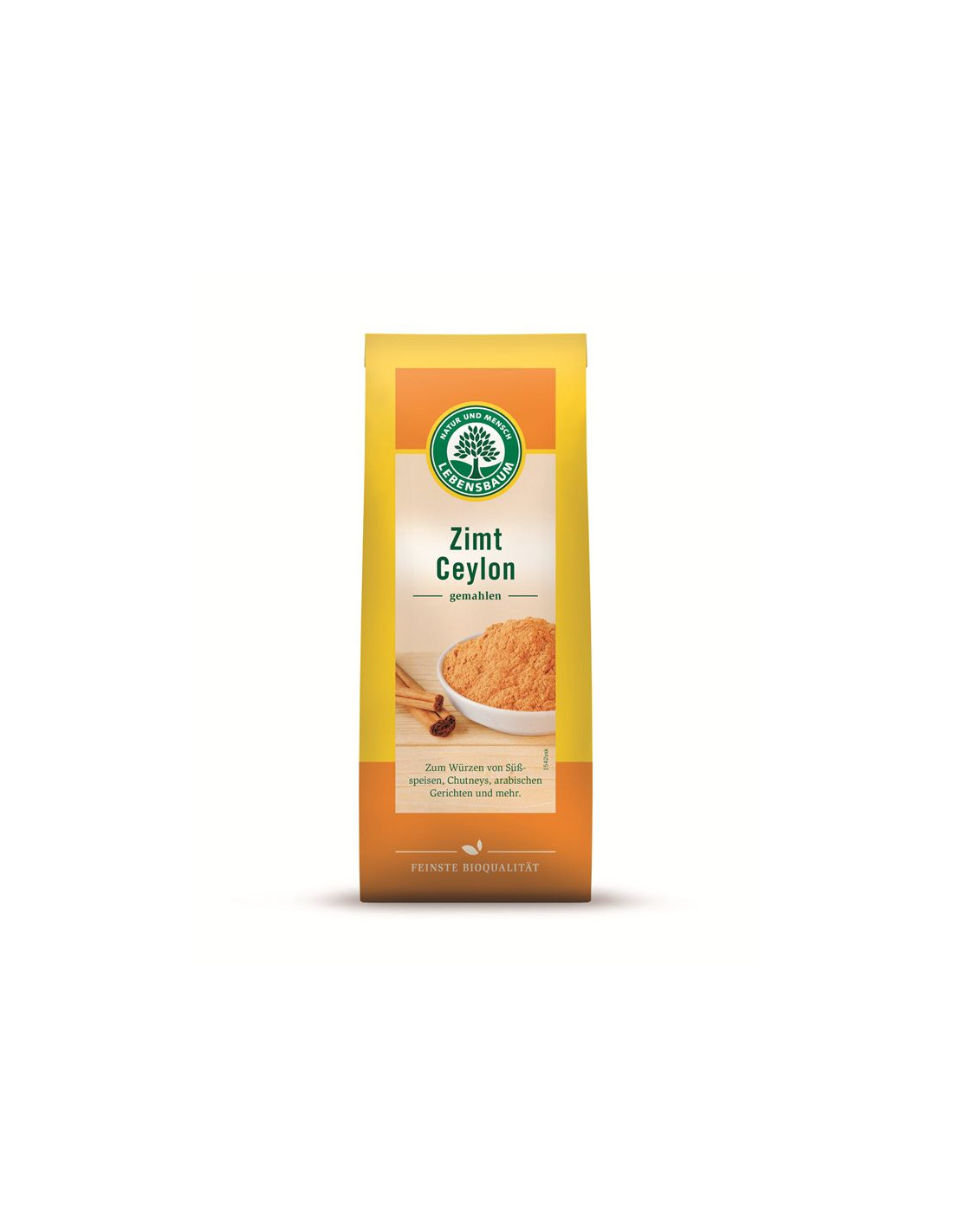 LEBENSBAUMCynamon cejloński pochodzi kontrolowanych upraw ekologicznych cynamonowca cejlońskiego w Sri Lance i jest najlepszym gatunkiem cynamonu na świecie. Ma delikatny słodko-korzenny smak i w przeciwieństwie do gorszej jakości cynamonu kasja, ma jasną, żółtobrązową barwę.