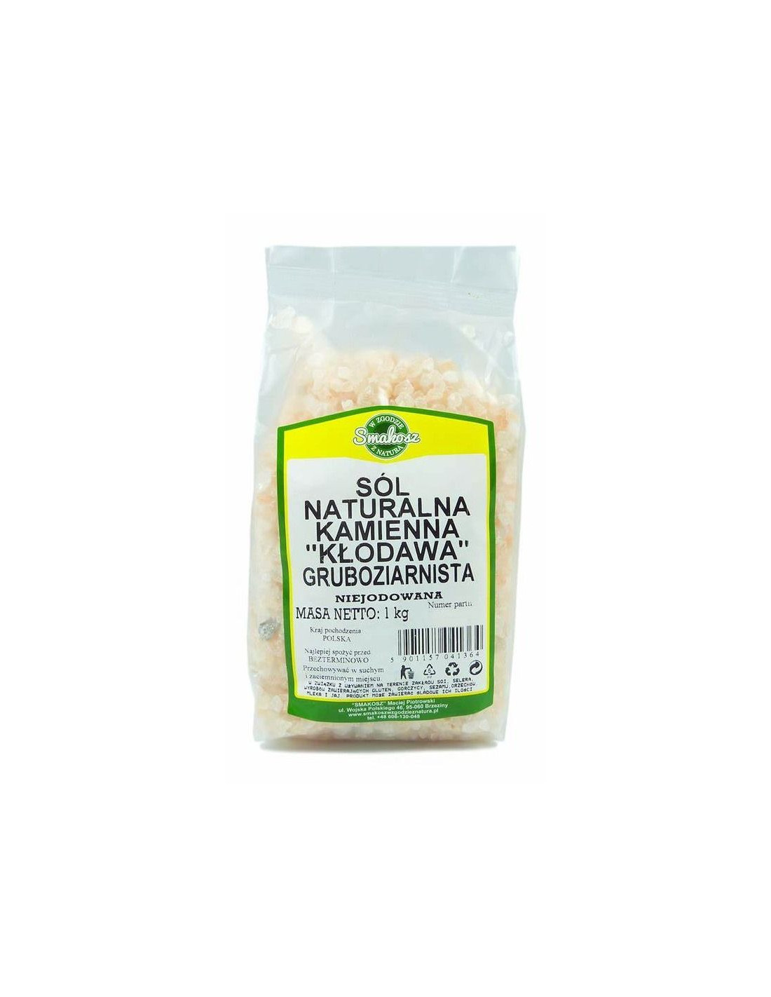 Opakowanie zawiera 1 kilogram soli kłodawskiej gruboziarnistej (kamiennej).