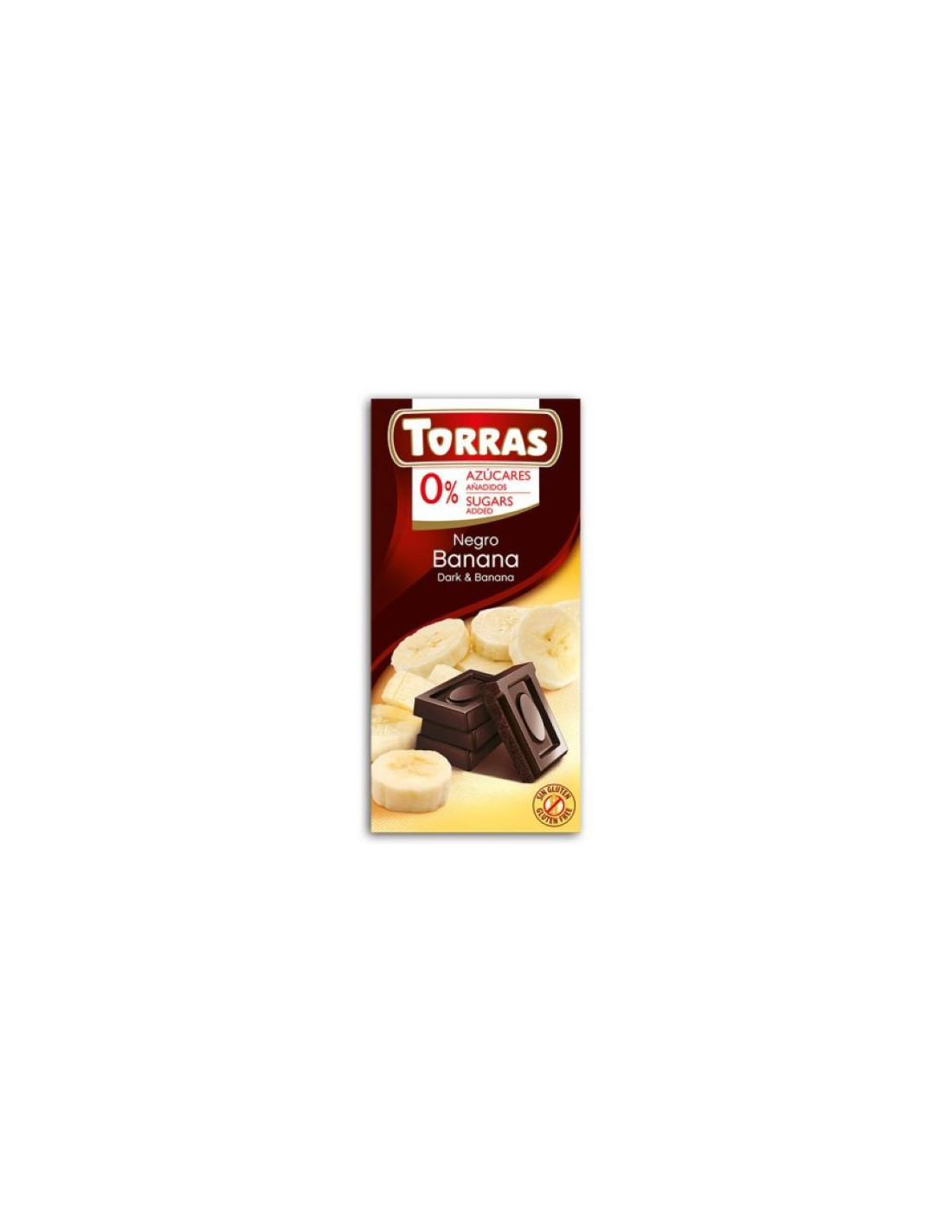 Składniki: substancja słodząca (maltitol 44%), miazga kakaowa, tłuszcz kakaowy, inulina, odtłuszczone kakao w proszku, liofilizowany banan (2%), emulgator (lecytyna słonecznikowa), aromaty (bananowy i waniliowy).