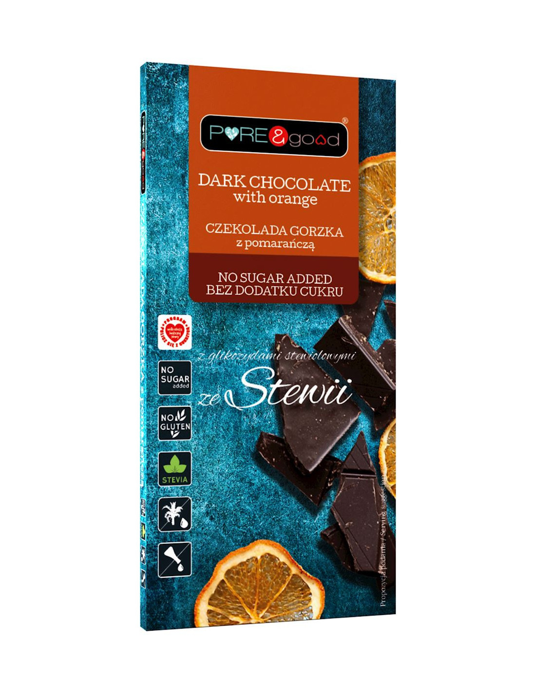 Czekolada gorzka słodzona stewią z pomarańczą bezglutenowa - 125g - PureGood
