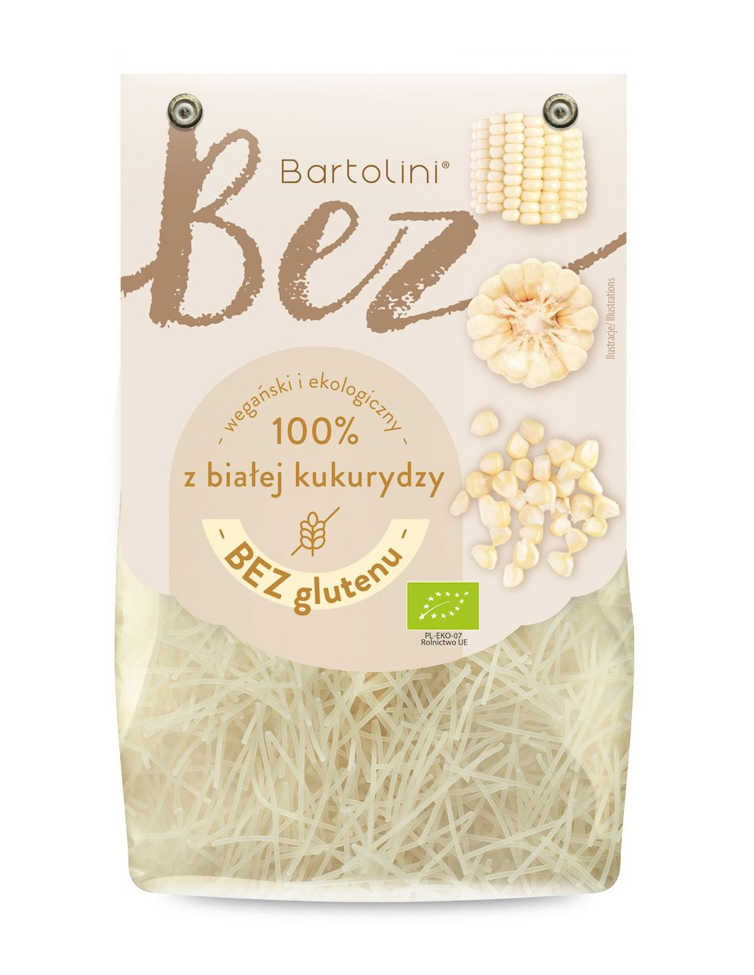 Makaron z białej kukurydzy krajanka bezglutenowy bio - 250g - Bartolini