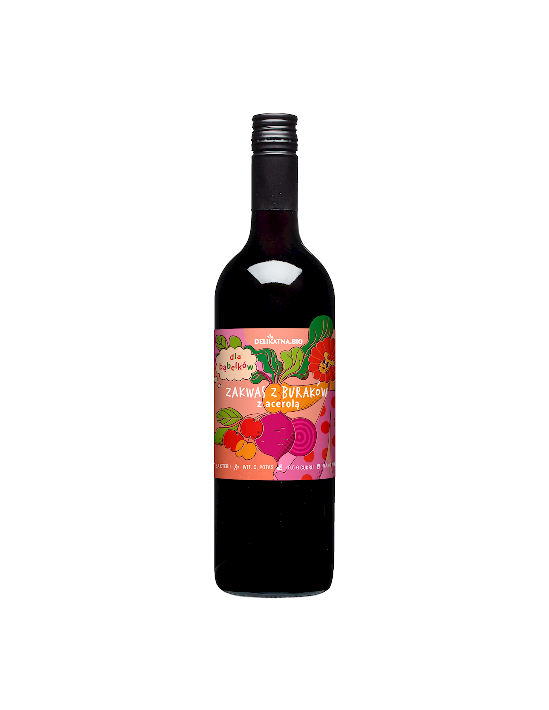 Pyszny słodko-kwaśny napój z kiszonych buraków z acerolą przygotowany na wodzie źródlanej. Dedykowany wszystkim dbającym o zróżnicowaną i zbilansowaną dietę oraz zdrowy styl życia. Rekomendowany dla dzieci powyżej 3 roku życia.