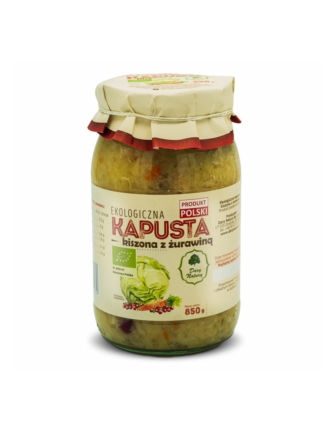 Kapusta kiszona z żurawiną - 850g - Dary Natury