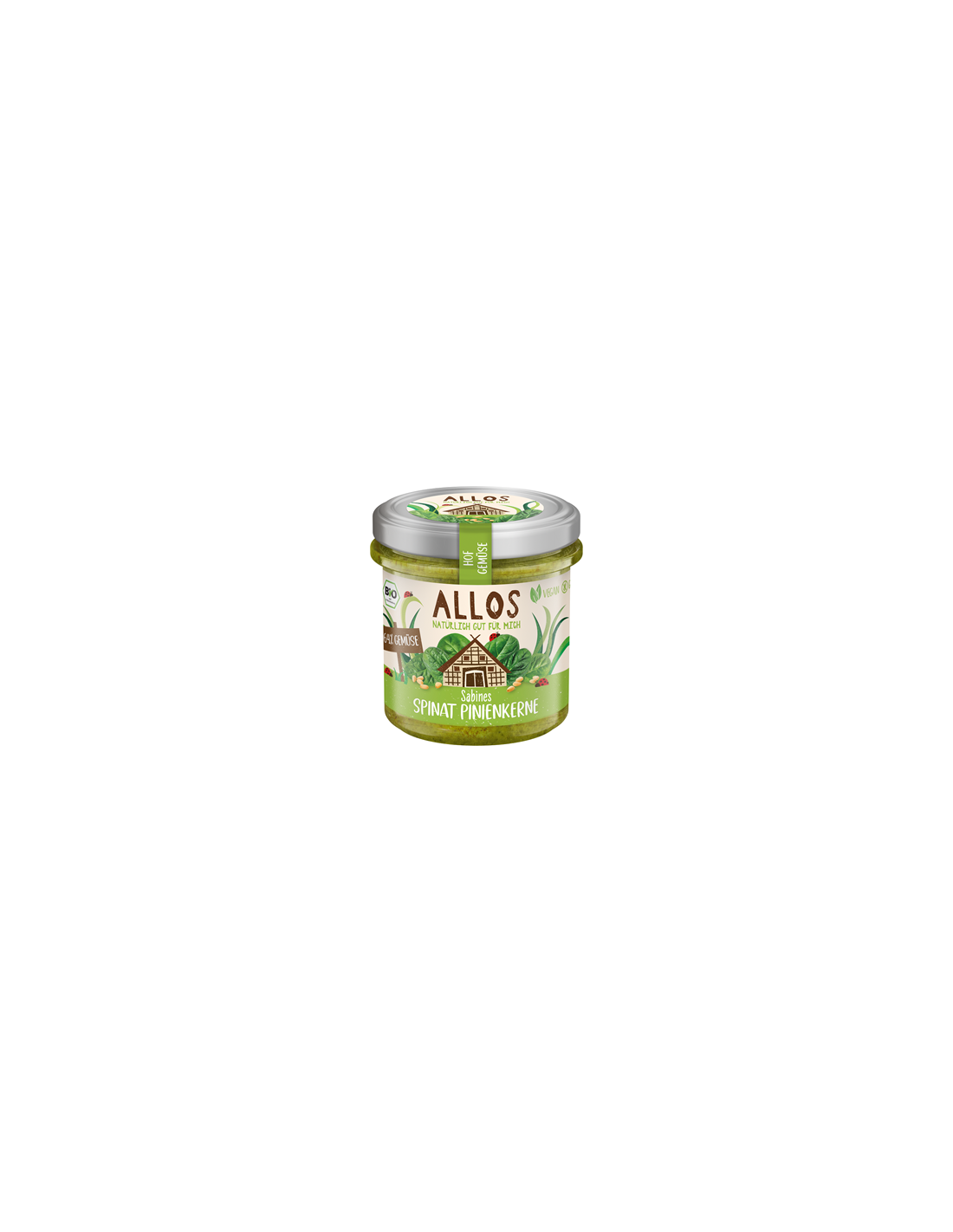 SKŁADNIKI szpinak* (44 %), cebula* (18 %), nasiona słonecznika* olej słonecznikowy*, orzeszki piniowe* (3 %), syrop z agawy*, skrobia ziemniaczana*, czosnek* (2 %), koncentrat soku cytrynowego*, sól morska, musztarda* (woda, nasiona GORCZYCY*, ocet*, sól morska, przyprawy*), przyprawy* (cebula w proszku*, czarny pieprz*), substancja zagęszczająca: mączka chleba świętojańskiego* (*certyfikowany składnik ekologiczny)