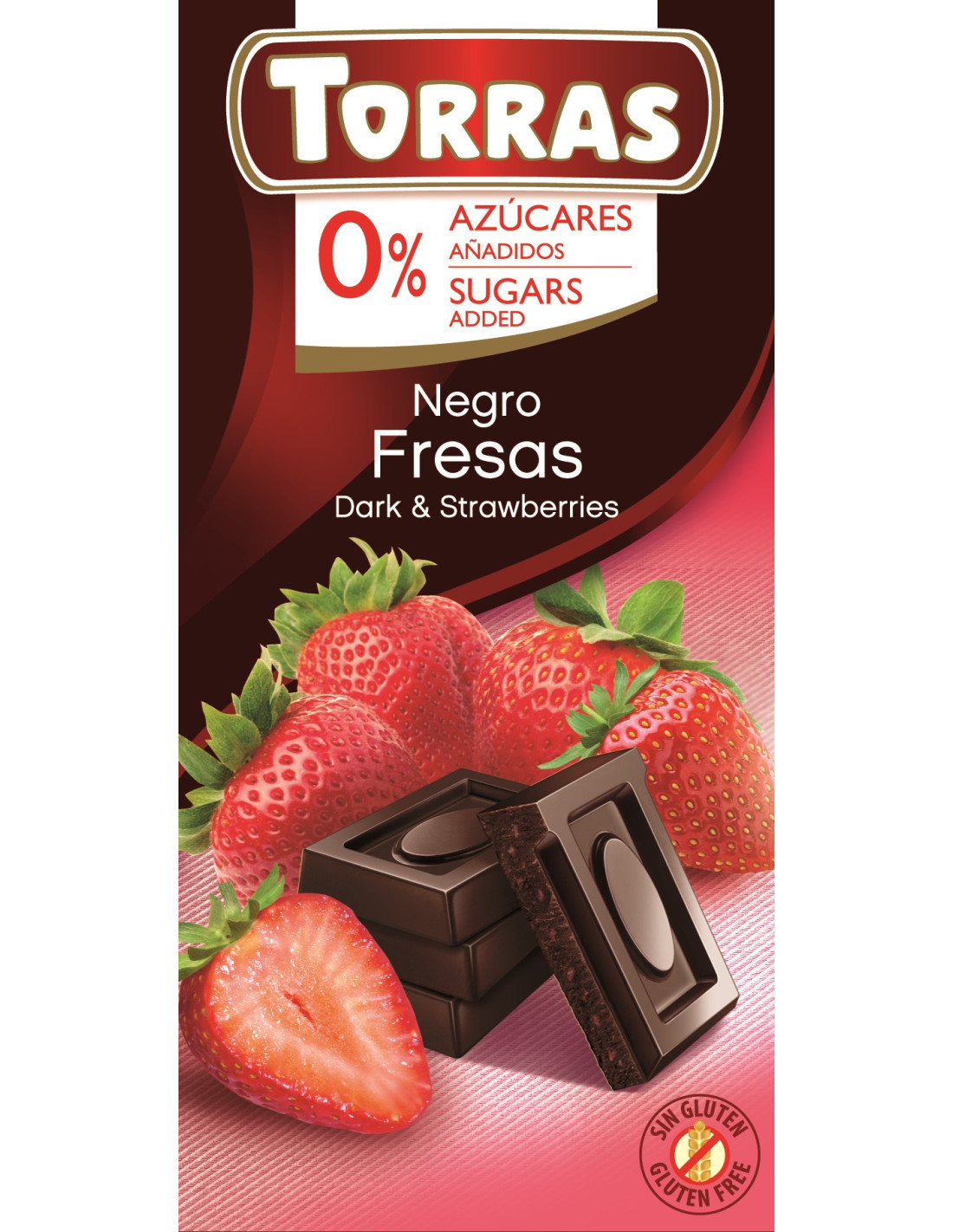 Czekolada gorzka z truskawkami bez cukru - 75g - Torras