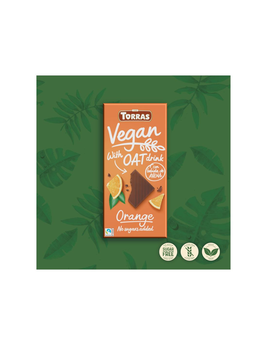 Czekolada wegańska z ekstraktem owsianym i pomarańczą bez dodatku cukru - 100g - Torras
