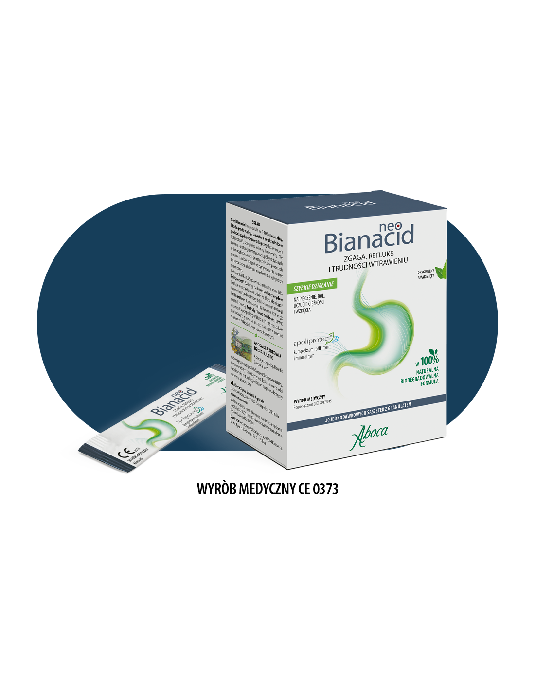 NeoBianacid to produkt na bazie Poliprotect® - kompleksu roślinnego i mineralnego, który wzmacnia ochronne działanie śluzu naturalnie pokrywającego błonę śluzową. Ma w 100% naturalną, biodegradowalną formułę ze składnikami z upraw ekologicznych.